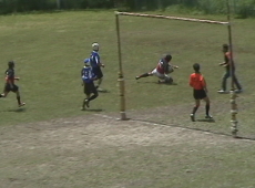 | そういえば、今日の試合には飯塚の他に久々参加のメンバーがもう一人いた。JKの最終兵器・テポドン小山2号。最近は仕事が忙しく、なかなか参加できないようだが、今日は久々の試合という事もあり、気合が十分入っていた(かどうかは不明)。しかし結局1度もボールに触る事なく「不発」となり、今日も寂しく帰って行ったのである。次回に期待しよう。 |
