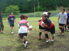 相手に捕まりながら、確実にボールを つなぐダニエル(ニュージーランド出身) |