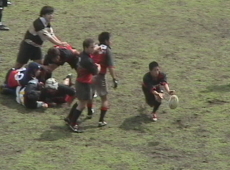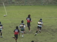 今日は2トライを決めて大活躍 のFB杉村(15番) |
