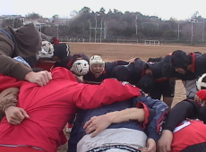 強烈なタックルをおみまいする